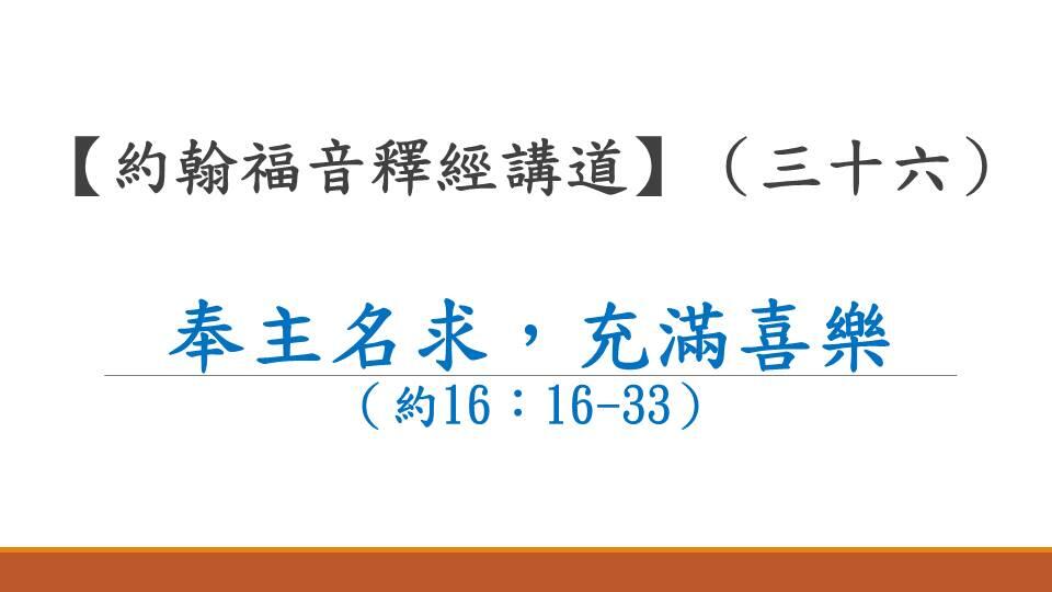 題目:【约翰福音36 -奉主名求,充滿喜樂】