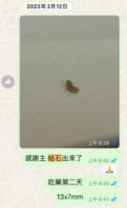 在我去深圳檢查之後,帶回來一個非常不好的消息,尿結石劃傷尿道產生了炎症,結石比較大,醫生估計只有10%的概率可以正常排出來。然而做手術需要住院至少兩週,而我每週都有課和Quiz等學習任務,真心不想住院治療耽誤學習。最終我請醫生先開一些消炎止痛和擴張輸尿管的藥物給我,給我考慮和回去準備一下。醫生無奈,最後千叮嚀萬囑咐兩週之內結石沒有排出,一定要回來住院進行手術治療。檢查回來之後,我不斷禱告求神醫治,突然間想到明天就是週六,有中大團契聚會,於是主動聯繫浩然弟兄,請他帶我參加團契。