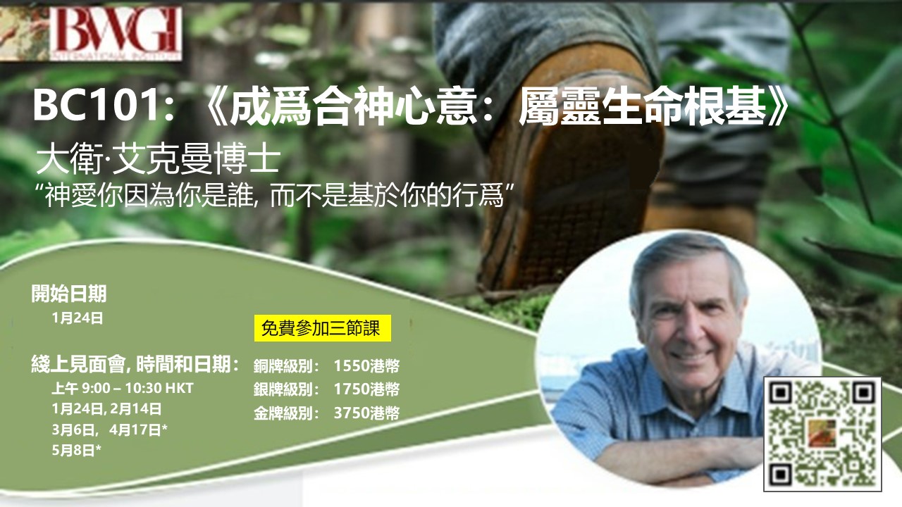邀請你參加大衛·艾克曼博士的BC101 “成為合神心意”課程。這門課包含12個章節的門徒訓練課程,已經在全球使用了25餘年。