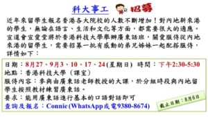 : 每一次在大堂的聚會都離不開音響和視像同工默默的服事,這個團隊需要邀請更多的弟兄姊妹加入,一起同心服事。若神給您這樣的感動,對這兩項服事有感動的弟兄姊妹,請聯絡音響部音響部 魏靖席弟兄(6376 6275); 視像部侯侃宏執事 (6159-2517) 。