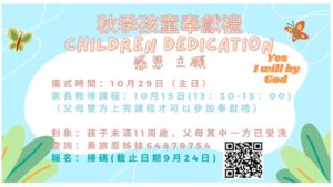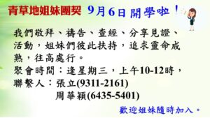 9月6日祈禱會。主題: 愛上禱告會:大能的主宰垂聽禱告,晚上7:45觀塘俊匯中心教堂7樓702室舉行。如果有代禱需求,可電郵至pray_ktc@www.hkmbc30.org。也歡迎弟兄姊妹網上參與禱告。ID84566402025,密碼: 123456。