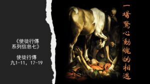1 掃羅仍然向主的門徒口吐威嚇兇殺的話,去見大祭司, 2 求文書給大馬士革的各會堂,若是找着信奉這道的人,無論男女,都准他捆綁帶到耶路撒冷。3 掃羅行路,將到大馬士革,忽然從天上發光,四面照着他。 4 他就仆倒在地,聽見有聲音對他說:「掃羅,掃羅!你為甚麼逼迫我?」5 他說:「主啊,你是誰?」主說:「我就是你所逼迫的耶穌。 6 起來!進城去,你所當做的事,必有人告訴你。」7 同行的人站在那裏,說不出話來,聽見聲音,卻看不見人。 8 掃羅從地上起來,睜開眼睛,竟不能看見甚麼。有人拉他的手,領他進了大馬士革。 9 三日不能看見,也不吃,也不喝。10 當下,在大馬士革有一個門徒,名叫亞拿尼亞。主在異象中對他說:「亞拿尼亞。」他說:「主,我在這裏。」11 主對他說:「起來!往直街去,在猶大的家裏,訪問一個大數人,名叫掃羅,他正禱告;17 亞拿尼亞就去了,進入那家,把手按在掃羅身上說:「兄弟掃羅,在你來的路上向你顯現的主,就是耶穌,打發我來,叫你能看見,又被聖靈充滿。」 18 掃羅的眼睛上好像有鱗立刻掉下來,他就能看見,於是起來受了洗, 19 吃過飯就健壯了。