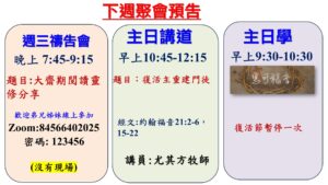 (提前2:1)1 我勸你第一要為萬人懇求、禱告、代求、祝謝;