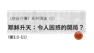 題目:【使徒行傳系列講道(一)耶穌升天:令人困惑的開局?