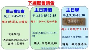 (3:1-13,18-20) 1 申初禱告的時候,彼得、約翰上聖殿去。 2 有一個人,生來是瘸腿的,天天被人抬來,放在殿的一個門口(那門名叫美門),要求進殿的人賙濟。 3 他看見彼得、約翰將要進殿,就求他們賙濟。 4 彼得、約翰定睛看他。彼得說:「你看我們!」 5 那人就留意看他們,指望得着甚麼。6 彼得說:「金銀我都沒有,只把我所有的給你。我奉拿撒勒人耶穌基督的名,叫你起來行走!」 7 於是拉着他的右手,扶他起來。他的腳和踝子骨立刻健壯了, 8 就跳起來,站着,又行走;同他們進了殿,走着,跳着,讚美神。 9 百姓都看見他行走,讚美神, 10 認得他是那素常坐在殿的美門口求賙濟的,就因他所遇着的事,滿心希奇驚訝。11 那人正在稱為所羅門的廊下,拉着彼得、約翰,眾百姓一齊跑到他們那裏,很覺希奇。 12 彼得看見,就對百姓說:「以色列人哪,為甚麼把這事當作希奇呢?為甚麼定睛看我們,以為我們憑自己的能力和虔誠使這人行走呢? 13 亞伯拉罕、以撒、雅各的神,就是我們列祖的神,已經榮耀了他的僕人耶穌,你們卻把他交付彼拉多。彼拉多定意要釋放他,你們竟在彼拉多面前棄絕了他。18 但神曾藉眾先知的口,預言基督將要受害,就這樣應驗了。 19 所以你們當悔改歸正,使你們的罪得以塗抹;這樣,那安舒的日子就必從主面前來到, 20 主也必差遣所預定給你們的基督耶穌降臨。