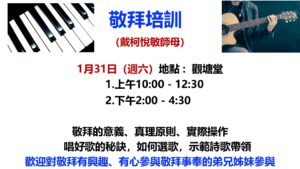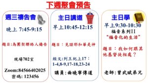 主內平安!  觀塘堂本周日主日崇拜的安排如下: