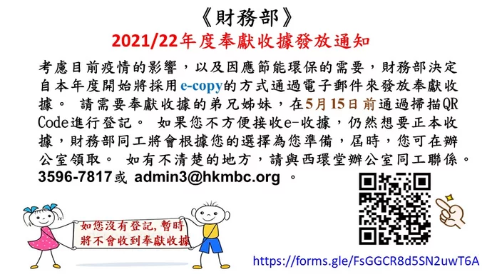 財務部專用電郵: offering_wic@www.hkmbc30.org;專用WhatsApp:5601 1522